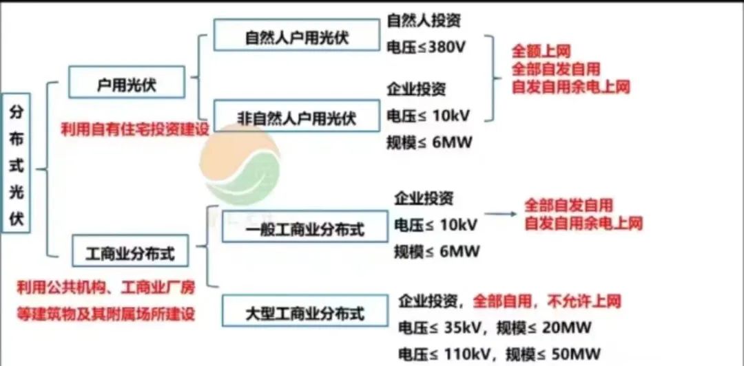 国家能源局新版管理办法将分布式光伏发电分为自然人户用、非自然人户用、一般工商业和大型工商业四种类型,这种细致的分类有助于更精准地管理不同规模和用途的分布式光伏项目。自然人户用分布式光伏主要是自然人利用自有住宅投资建设,电压等级不超过 380 伏;非自然人户用分布式光伏则是由非自然人利用居民住宅投资建设,电压等级不超过 10 千伏且总装机容量不超过 6 兆瓦;一般工商业分布式光伏利用公共机构以及工商业厂房等建筑物及其附属场所建设,电压等级为 10 千伏(20 千伏)及以下、总装机容量不超过 6 兆瓦;大型工商业分布式光伏利用建筑物及其附属场所建设,接入电力用户内部电网或与用户开展专线供电,电压等级为 35 千伏总装机容量不超过 20 兆瓦或电压等级为 110 千伏(66 千伏)总装机容量不超过 50 兆瓦,且建筑物及其附属场所应位于同一用地产权红线范围内。